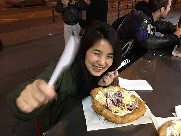 比臉大的langos!!! 這間langos的餅更厚,旅伴覺得像『雙胞胎』的口感,但洋蔥太多太辣了,OUT!